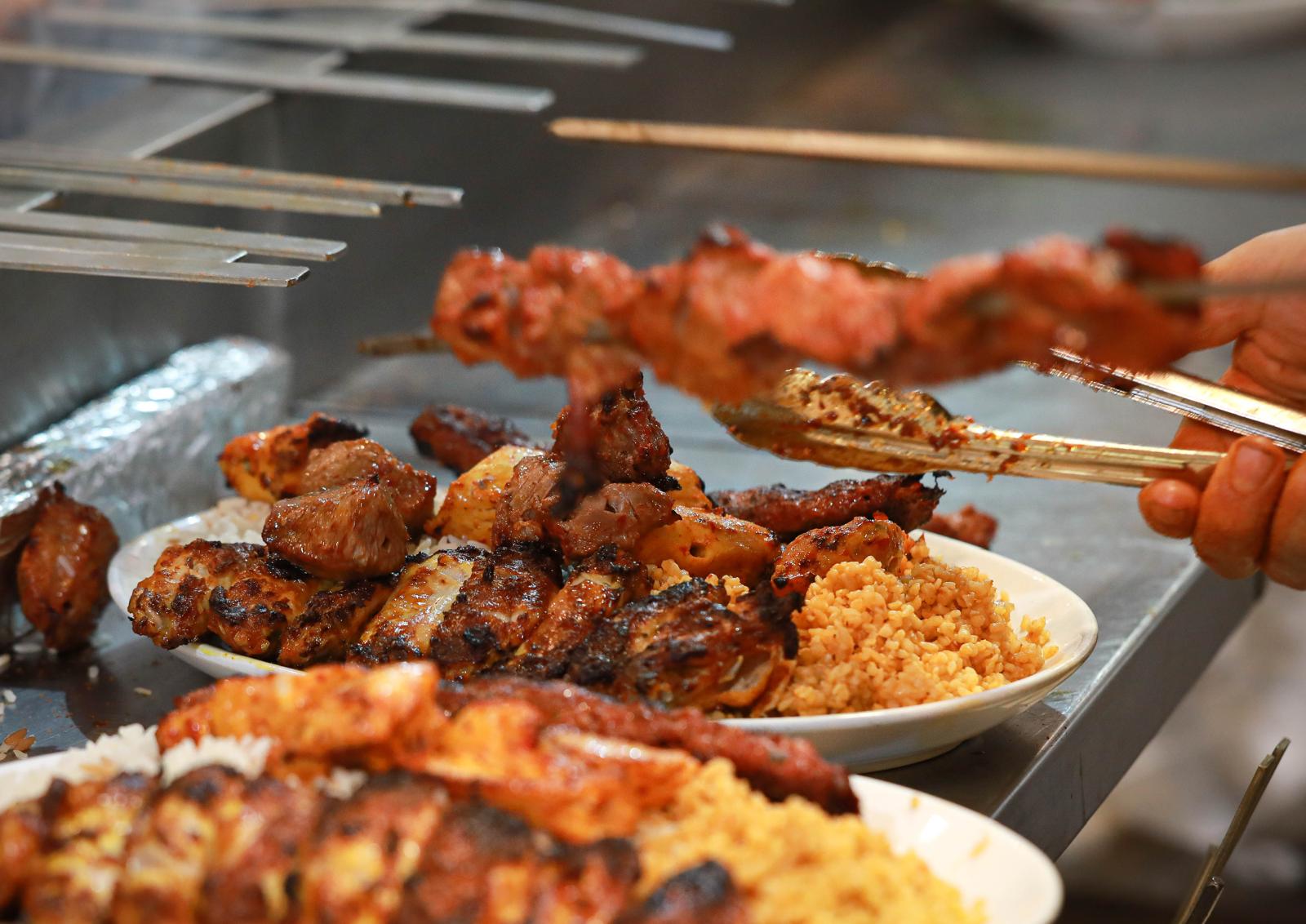 Korean Chicken Skewers, Basil Hummus Platters, Grilled Fish Filltet